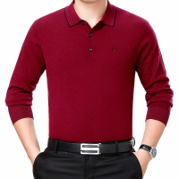 春秋季纯100纯山羊毛绒衫男中年翻领本命年红色2024春秋装EERDS羊毛衫新款长袖T恤男针织打底衫男保暖体恤衫