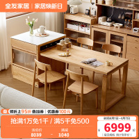 全友家居 全实木岛台餐桌一体可伸缩家用餐厅小户型饭桌椅组合