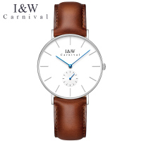 瑞士嘉年华Carnival 新款手表时尚潮流石英表 男表女表休闲男士简约真皮带防水精钢男士手表薄款腕表8848G