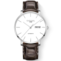 嘉年华(CARNIVAL)手表新款进口机芯 MASTER系列休闲时尚双日历真皮带自动机械表 男士简约腕表8020G
