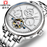 正品嘉年华CARNIVAL手表新款男士自动机械表 男表飞轮夜光防水镂空年月显示休闲时尚多功能腕表有金属钢带真皮带8724