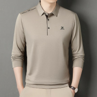 春秋季薄款男式T恤翻领休闲打底衫中年男士长袖宽松上衣