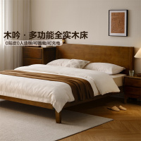 全友家居新中式全实木双人床卧室可调高床屏双人床