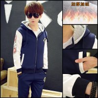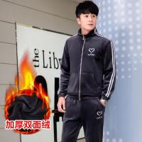 休闲运动套装男加绒加厚连帽青年2017冬季新款连帽卫衣外套长裤潮