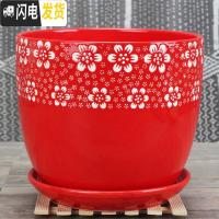 三维工匠中国风大红色陶瓷花盆批有孔/喜庆花盆纯红个性创意花盆/免邮 红色/(170) 大花盆容器