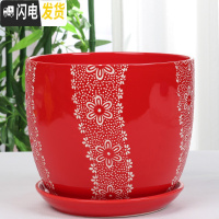 三维工匠中国风大红色陶瓷花盆批有孔/喜庆花盆纯红个性创意花盆/免邮 红色/(161) 特大花盆容器