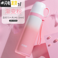 三维工匠好看的水杯外出便携可爱女士创意个性潮流清新保温杯学生情侣杯子 透明盖500紫色水蜜桃