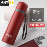 三维工匠保温杯 500水杯不锈钢便携创意男女办公儿童学生定制杯子 塑红