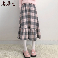 秋冬季女装日系格子松紧腰荷叶边拼接半身裙中长裙2017新款A字裙满30元联系客服改运费