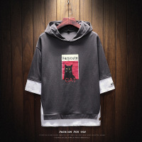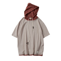YANXU潮牌夏季涂鸦连帽T恤男日系潮流宽松大码短袖带帽卫衣ins百搭半袖