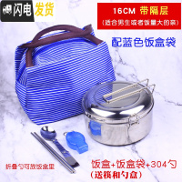 三维工匠蒸饭盒304不锈钢饭盒圆形双层食堂饭缸成人铁饭盒便当盒学生带盖 16CM+勺(送筷+盒)+蓝色饭盒袋