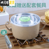 三维工匠不锈钢泡面碗带盖双耳单个宿舍学生饭盒日式可爱方便面碗餐具大号 北欧米+餐具