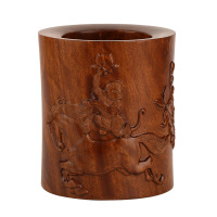 东阳木雕刻红木笔筒 花梨木仿古工艺品 马上封侯原木书房礼品摆件
