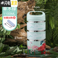 三维工匠不锈钢多层保温桶饭盒1人便携超长便当餐盒学生上班族大容量提 [大号]三层-绿色(1800)收藏加购送便携餐具