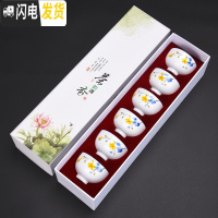 三维工匠陶瓷功夫茶具套装家用品茗杯主人杯个人杯斗笠杯茶杯茶道配件 G款白瓷兰染杯套组-礼盒装