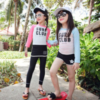 2016新款儿童泳衣中大女童运动分体防晒长袖长裤女孩女童游泳衣