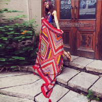 超大民族风防晒沙滩丝巾彩色几何流苏印花棉麻四季披肩百搭