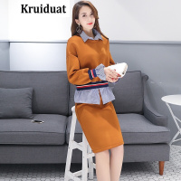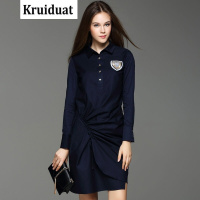 Kruidvat女装2017春季韩版翻领小衫休闲一步裙两件套连衣裙LJYFS