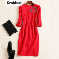Kruidvat2017春新款女装重工订珠一步裙修身显瘦包臀气质连衣裙OYCP