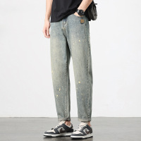 重磅牛仔裤 男士复古泼墨牛仔裤泥染水洗锥形裤 潮牌男装