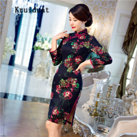Kruidvat 奈琴尔2016秋冬新款旗袍中长款七分袖民国中式日常妈妈装旗袍礼服女 SKY