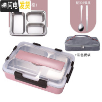 三维工匠学生分格饭盒成人上班族304不锈钢便当盒食堂保温餐具盘加深加大 粉色3格[配304勺筷]+轻奢灰保温袋
