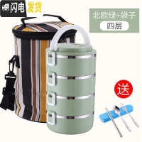 三维工匠简约不锈钢便携饭盒密封保温可爱女便当盒上班族学生多层餐盒手提 北欧绿4层加保温袋送餐具+百洁布