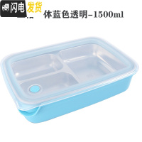 三维工匠韩国便当盒学生饭盒分格加深不锈钢304保温餐具餐盒儿童卡通餐盘 19新款-三格一体蓝透明1500
