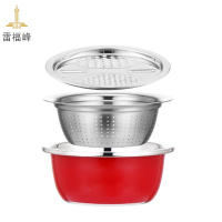 雷福峰 加厚不锈钢盆子三件套红色-3件套(26cm盆+漏盆+刨丝盘)/套