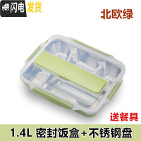 三维工匠密封饭盒 304不锈钢成人便当盒学生上班族微波炉专用分格保温餐盒 北欧绿密封饭盒+不锈钢盘(送餐具)