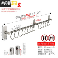 三维工匠12mm免打孔厨房挂杆304不锈钢拉丝锅铲勺子壁挂钩支架餐具收纳架 含管座总长151CM(17钩+1中通)