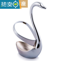 敬平轻奢水果叉子甜品水果签纯铜天鹅底座创意餐具点心咖啡勺套装 金白中号[单独天鹅底座]