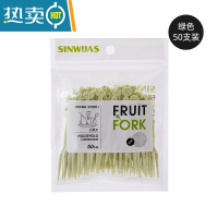 敬平水果叉塑料小叉子透明水果签点心蛋糕叉单独包装果盘叉 绿色[一包50支]