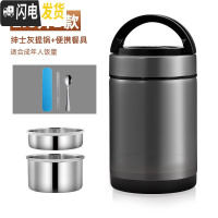 三维工匠304不锈钢保温桶家用大容量装汤桶12小时1人便携超长真空保温 [B款亮面]绅士灰2.0+便携餐具+饭盒/提锅