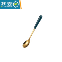 敬平水果叉子家用可爱勺子不锈钢北欧甜品勺点心叉水果签果插餐具套装 金色勺子