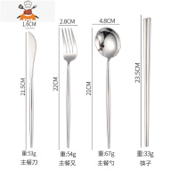 北欧式304不锈钢西餐刀叉勺筷子四件套家用餐具牛排刀叉套装全套 敬平 刀叉勺筷子(四件套)- 镜面原色