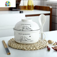 陶瓷泡面碗带盖套装吃饭碗学生食堂宿舍饭盒一人食餐具家用便当盒 FENGHOU 白色小鸟陶瓷面碗收藏宝贝送勺筷1