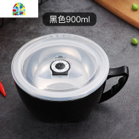 封后304不锈钢日式泡面碗 带盖大号饭盒面碗学生宿舍饭碗单个碗筷套装 FENG 升级款可注水黑色[(800ML)餐具+袋