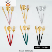 西餐刀叉牛排刀叉西餐餐具刀叉勺三件套装家用不锈钢勺叉子餐刀 敬平 三件套 刀叉勺 颜色备注