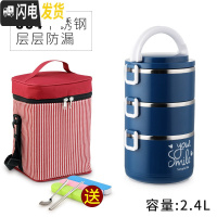 三维工匠304多层学生男女超长不锈钢保温饭盒韩国带盖餐盒便当盒成人345层 尊贵版蓝色3层(送保温袋和餐具)
