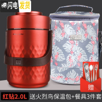 三维工匠304不锈钢超长真空保温桶饭盒学生上班族焖烧壶1人便携套装便当盒 红钻2.0+酒红包(赠餐具)