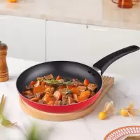 炊大皇麦饭石色煎锅不粘平底锅不粘锅具电磁炉燃气燃气灶通用 中国红