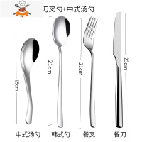 304不锈钢牛排刀叉勺套装加厚 三件套刀叉二件套西餐刀叉勺餐具 敬平 (刀叉勺套装+中式汤勺)4支装