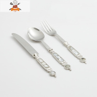 Hrmoso牛排刀叉家用欧式不锈钢西餐餐具套装刀叉勺三件套ins风 敬平 刀叉勺三件套[圆形浮雕]
