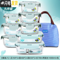 三维工匠上班族玻璃饭盒微波炉加热专用保鲜保温分隔型便当带盖碗九件套装 [套装F]北欧蓝9件套