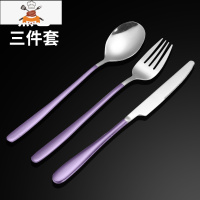 刀叉勺三件套西餐套装牛排刀西餐勺餐具勺叉二件套家用餐刀 敬平 紫色 三件套 刀叉勺