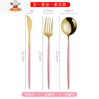 西餐餐具刀叉勺筷子套装304不锈钢家用牛排刀叉三四件套北欧ins风 敬平 粉柄金色3件套