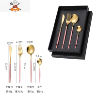 西餐餐具套装304不锈钢全套欧式家用吃牛排刀叉勺筷子四件套 敬平 粉金(刀叉勺咖啡勺)