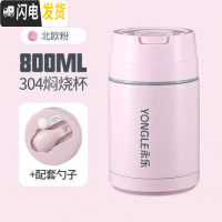 三维工匠304不锈钢焖烧杯女便携超长保温学生桶饭盒1人上班族闷烧壶杯焖粥 800北欧粉+折叠勺