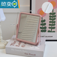 敬平ins风简约镜子化妆镜学生宿舍台式桌面可立双面镜家用便携梳妆镜 小号方形-粉色+白板笔便携式用镜